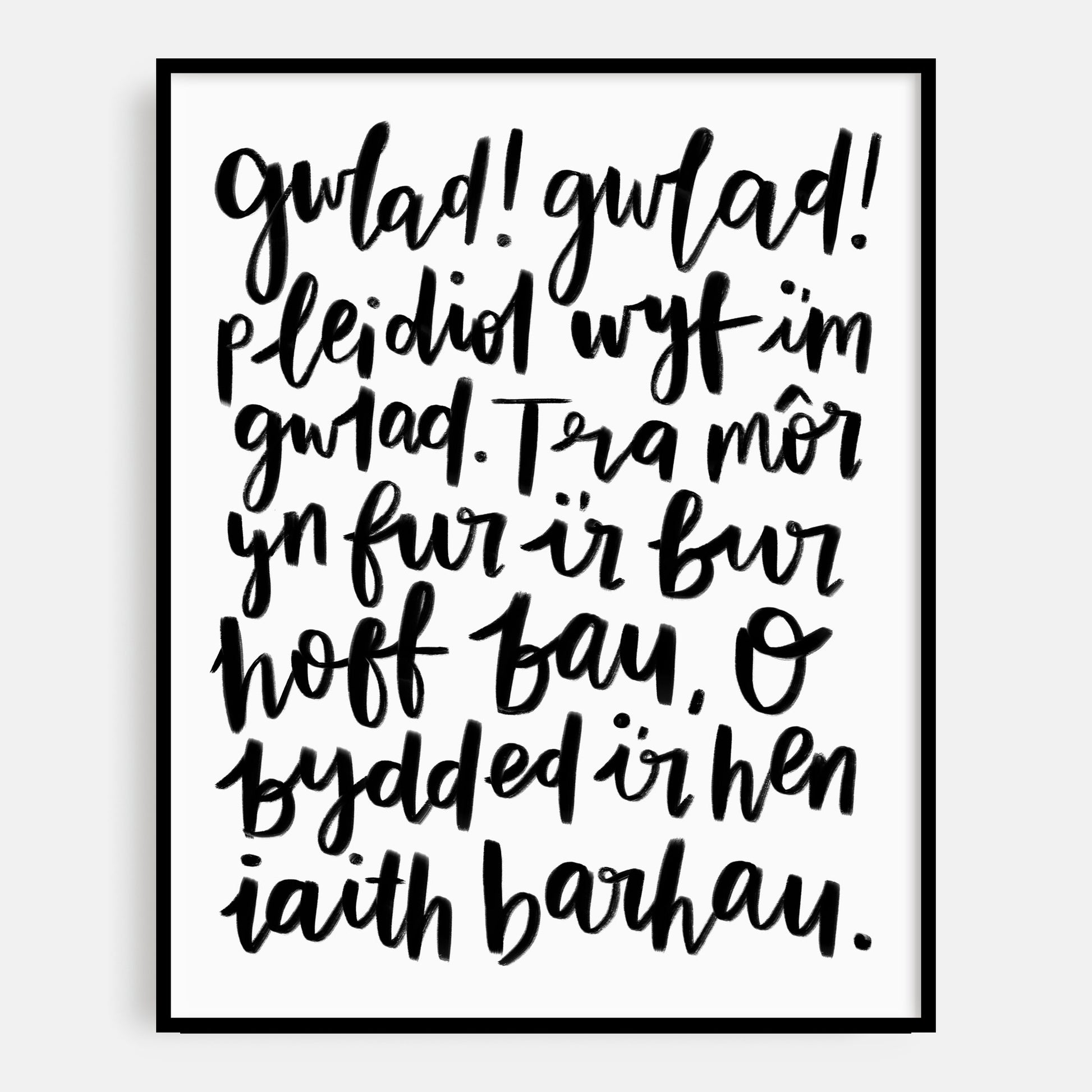 • A beautiful hand lettered version of the chorus of The Welsh National Anthem, by a local Welsh artist
