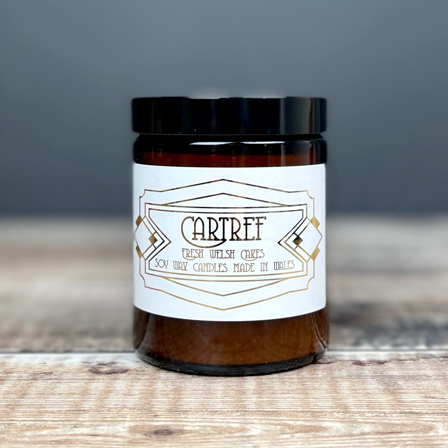 • This candle is made from Organic, Vegan Soy Wax in a reusable amber glass jar