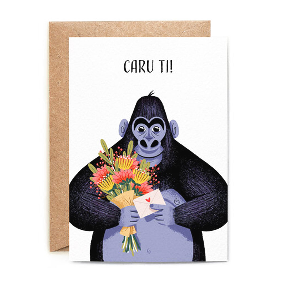 Lush Welsh greeting Card – Caru Ti, let the cutest Gorilla tell someone you love them!