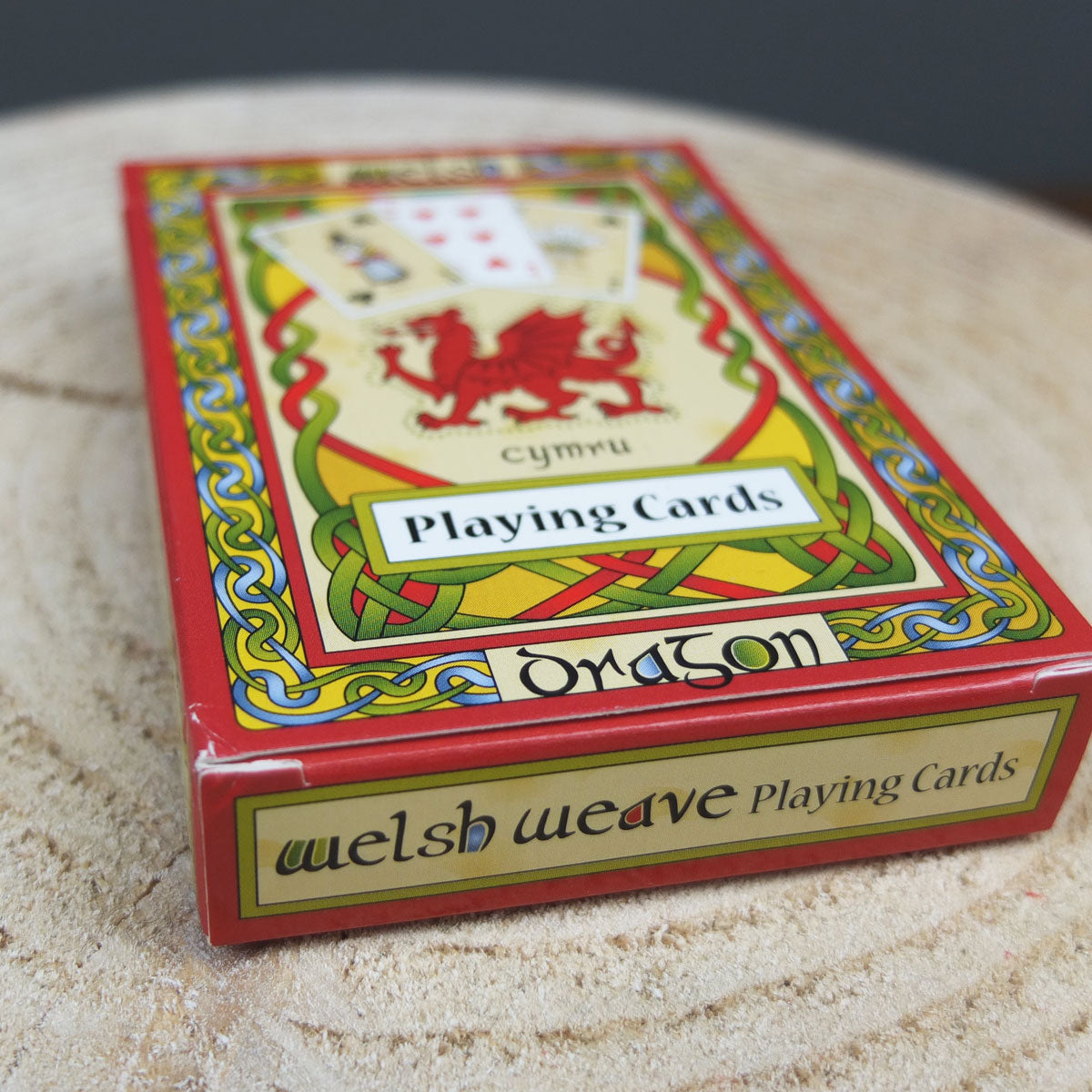 Luxury Welsh Playing cards depicting the emblems of Wales - the Welsh Dragon, Welsh Lady and the Prince of Wales Feathers, all in a style inspired by ancient illuminated manuscripts. You can never find the good set of playing cards when you need them - making these the perfect Welsh Gift for friends or family.