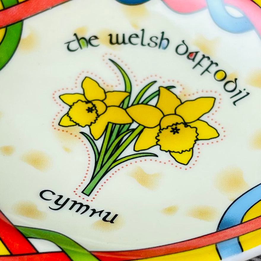 The perfect place to leave your Welsh Brew Tea Bag - china Tea Bag Tidy featuring the Welsh Daffodil and a colourful Celtic design. Measures 8.5cm by 11.5cm.