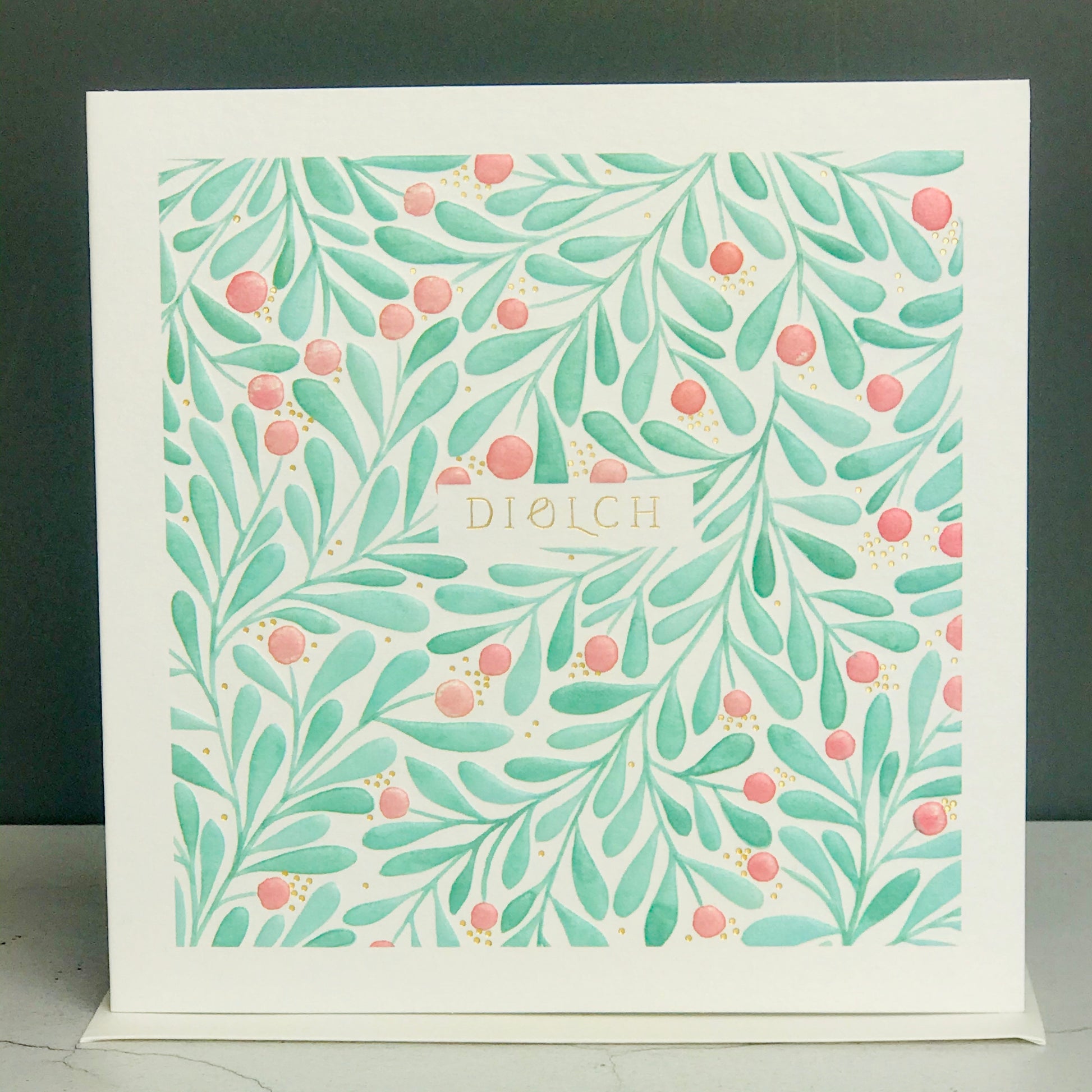 Elegantly embossed welsh thank you card. Beautifully subtle colours with touches of gold.