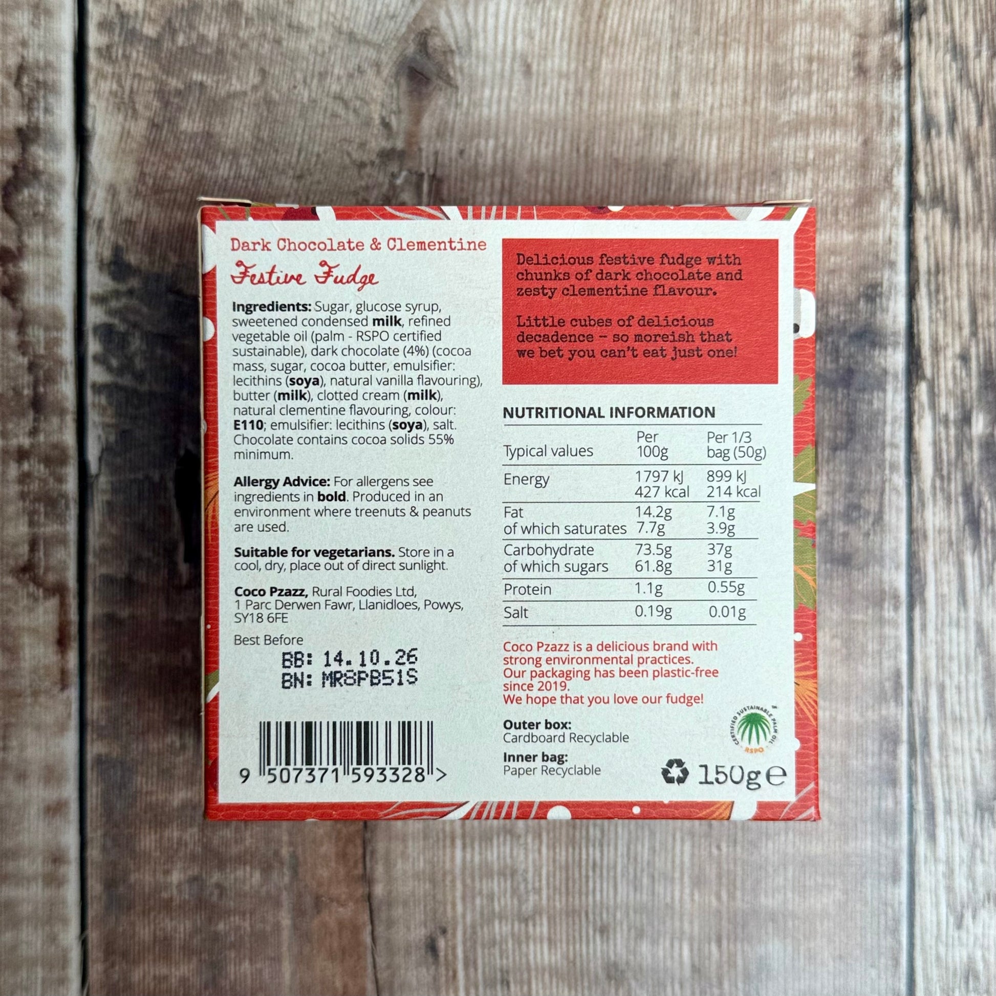 Delicious festive fudge with chunks of dark chocolate and zesty clementine flavour. Little cubes of deliciousness so moreish we bet you cant just eat one!