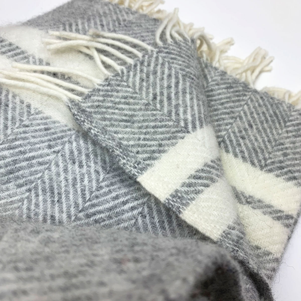 Grey and Off White Two Stripe Welsh Blanket by Tweedmill