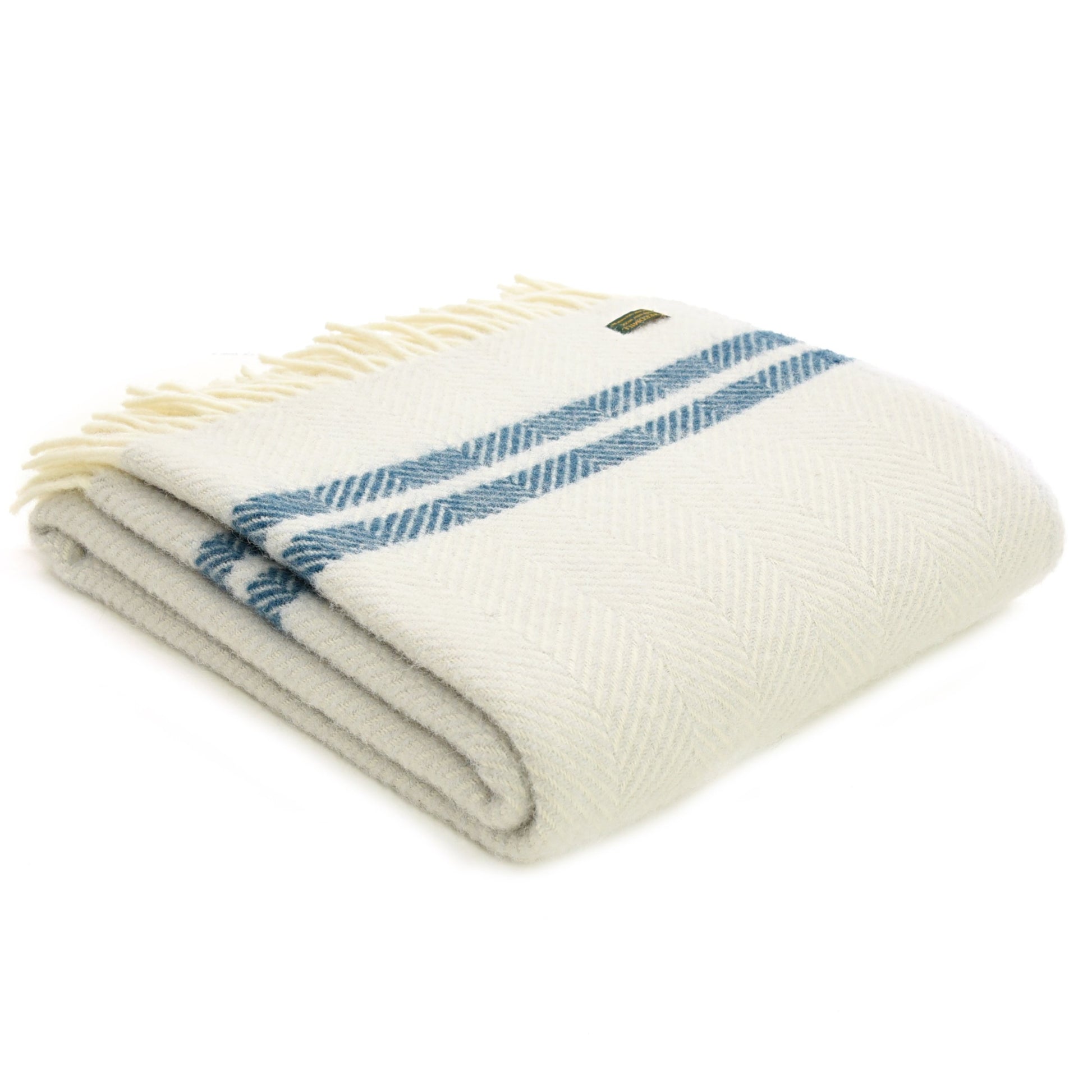 Glacier and Ink Two Stripe Welsh Blanket by Tweedmill