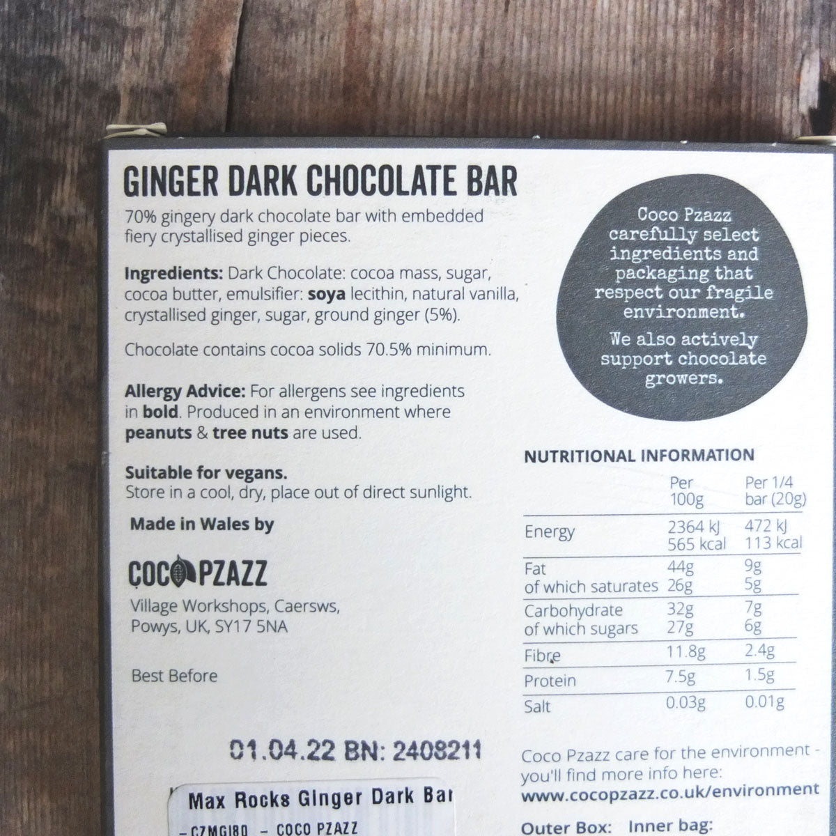 Vegan Max Rocks Dark Chocolate Ginger Bar