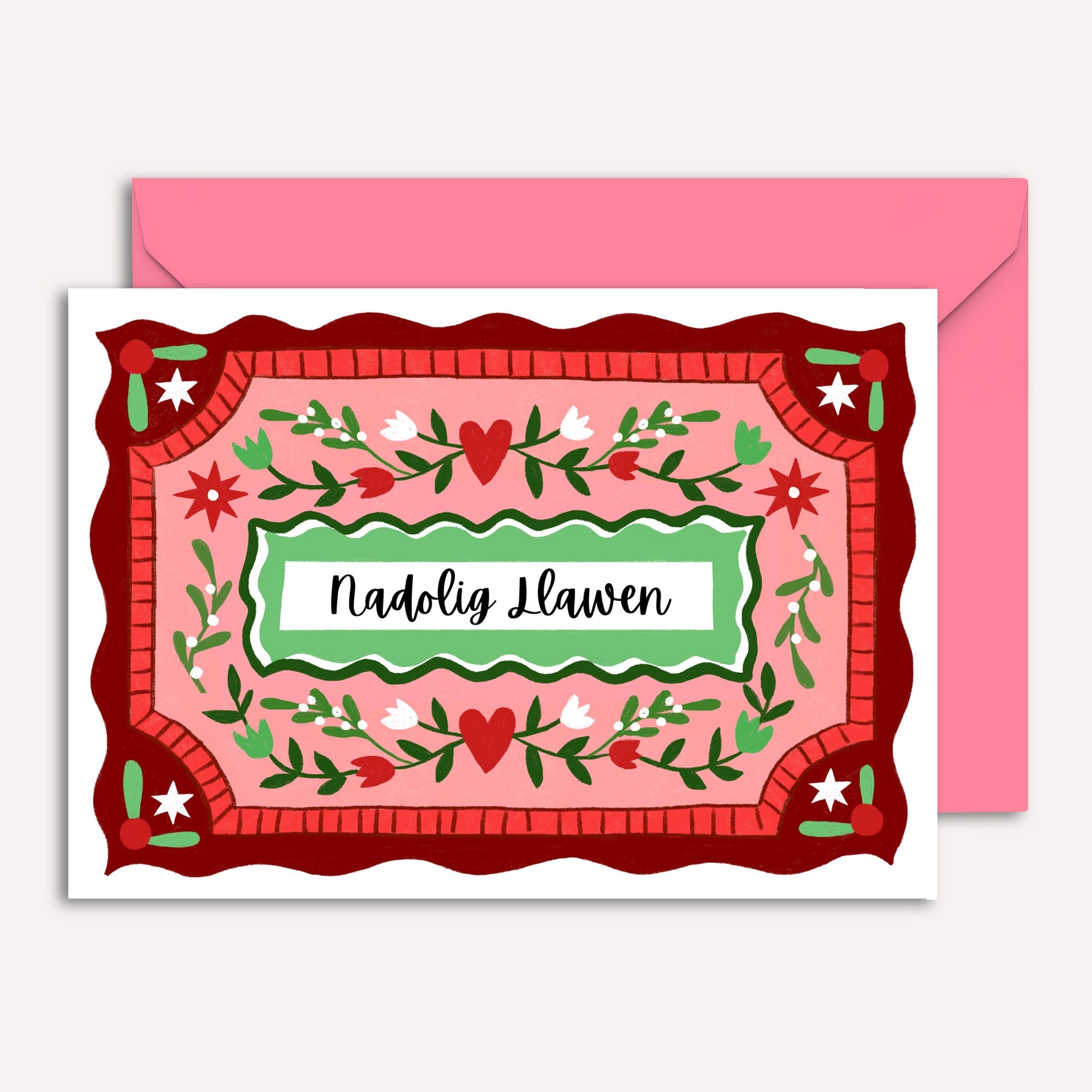 Nadolig Llawen Vintage Hearts Card