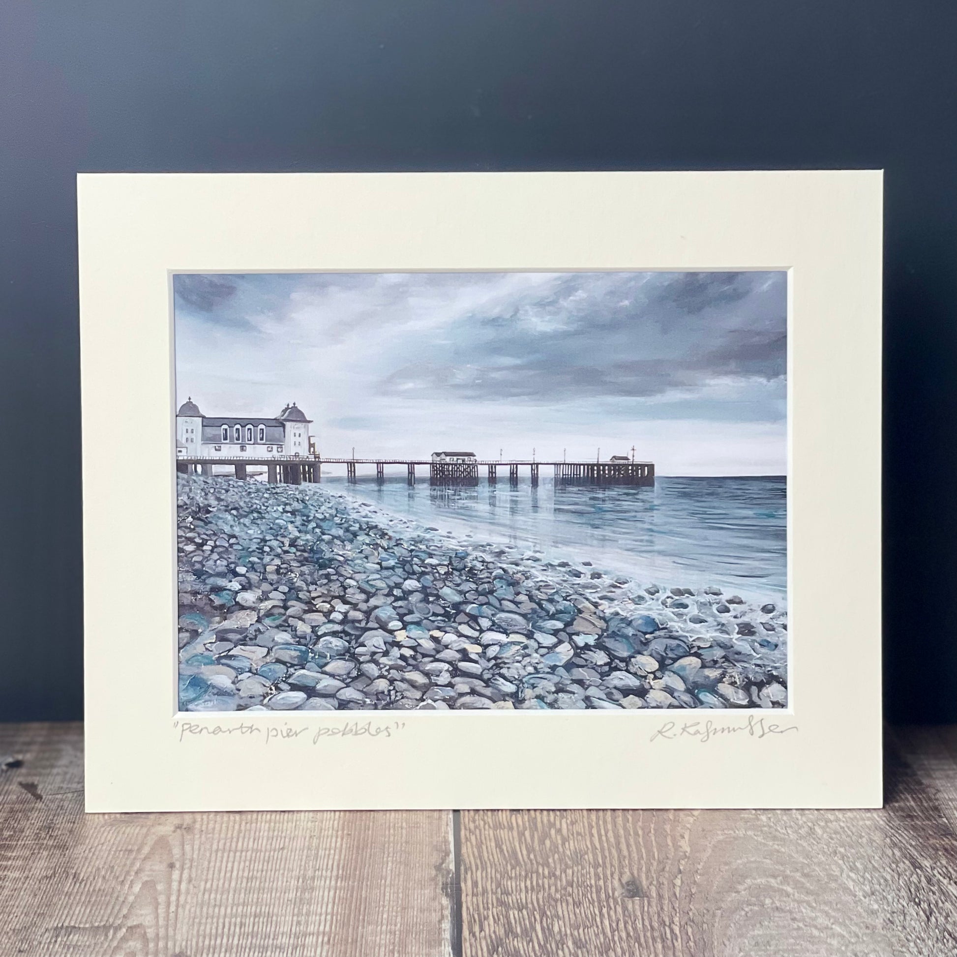• This beautifully overcast print showcases the true, natural beauty of Penarth, with a monochrome rainbow of pebbles leading up to the bold, iconic pier. This Welsh Art Print is perfect to remind anyone of the coastal beauty