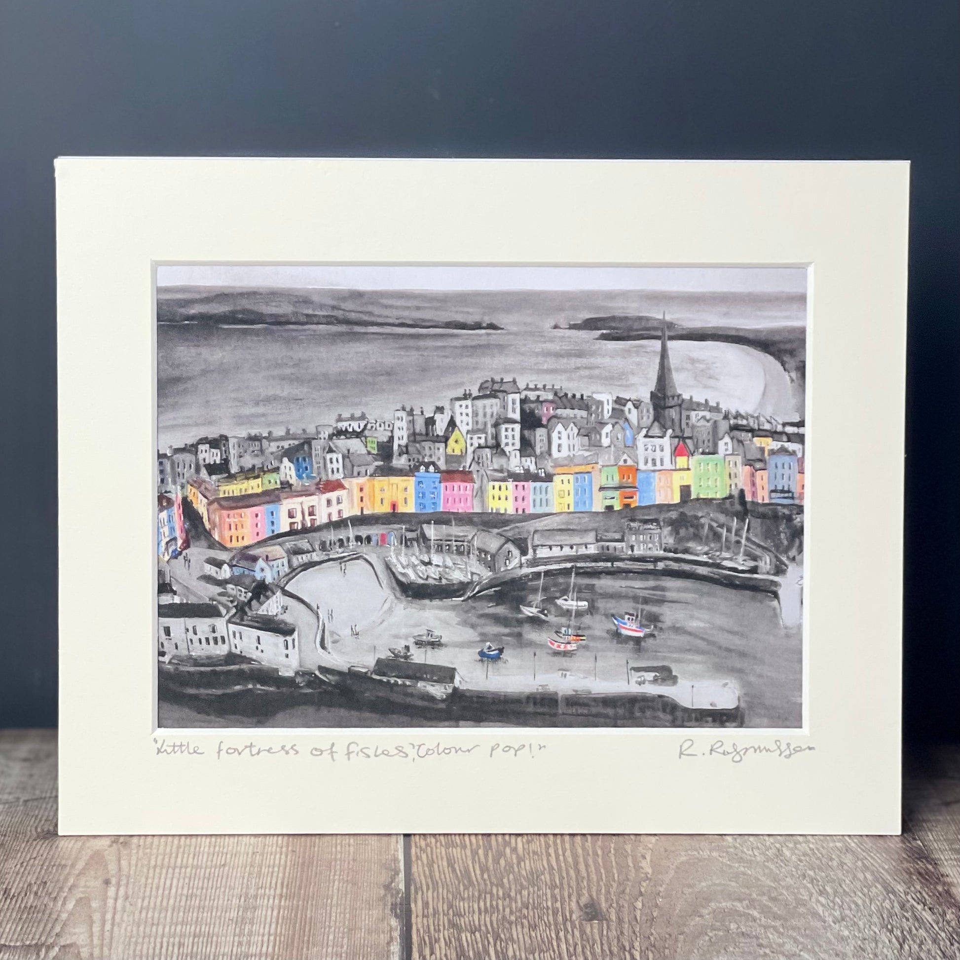 'Fortress of Fish' Pop of Colour Welsh Art Print