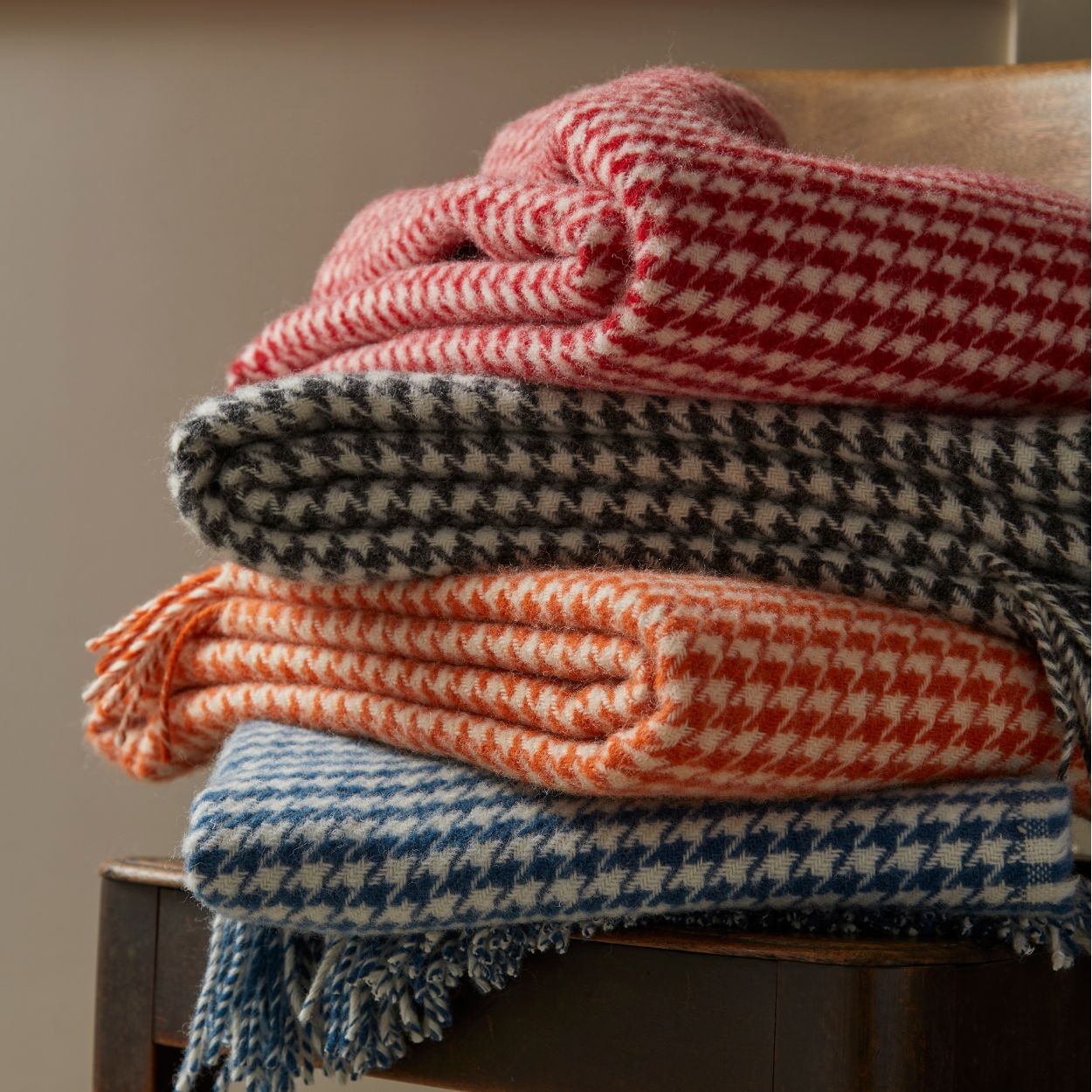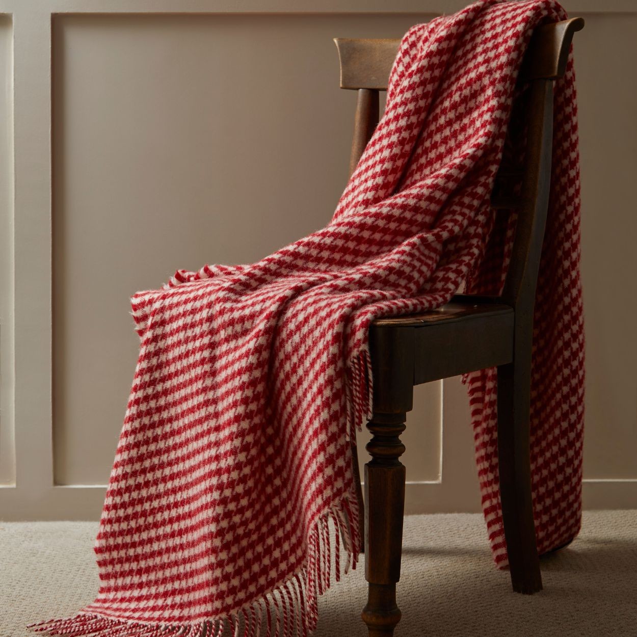 This timeless classic has a fresh new look - now available in a pop of Red.  This duotone weave is carefully created by our skilled team of expert weavers, blending red and cream tones to create a striking Houndstooth design.