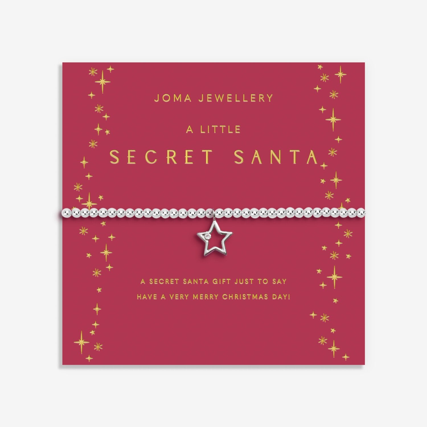 Made to last and be loved for a lifetime, this Christmas A Little 'Secret Santa' Bracelet By Joma Jewellery is Silver Plated & decorated with a pretty star charm to celebrate the magic of the season. Wrapped around a shimmering starburst-print card and framed by a sweet poem, it's sure to make a wonderful stocking filler or under-the-tree treat.