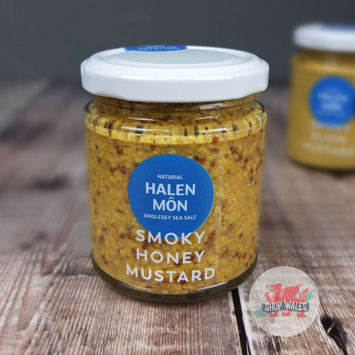 • Ingredients: Whole mustard seeds (40%), British Honey (20%), water, vinegar, Halen Môn Oak Smoked Water, Halen Môn Oak Smoked Sea Salt PDO